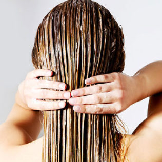 I give my hair and scalp a weekly Argan Oil treatment. All you need is a few drops of pure argan oil. I simply rub the oil thoroughly between my palms and then comb my hands and fingers thoroughly through damp or towel-dried hair, making sure I massage it into the scalp and hair tips. This promotes a healthy scalp, encourage hair growth and to treat split ends.