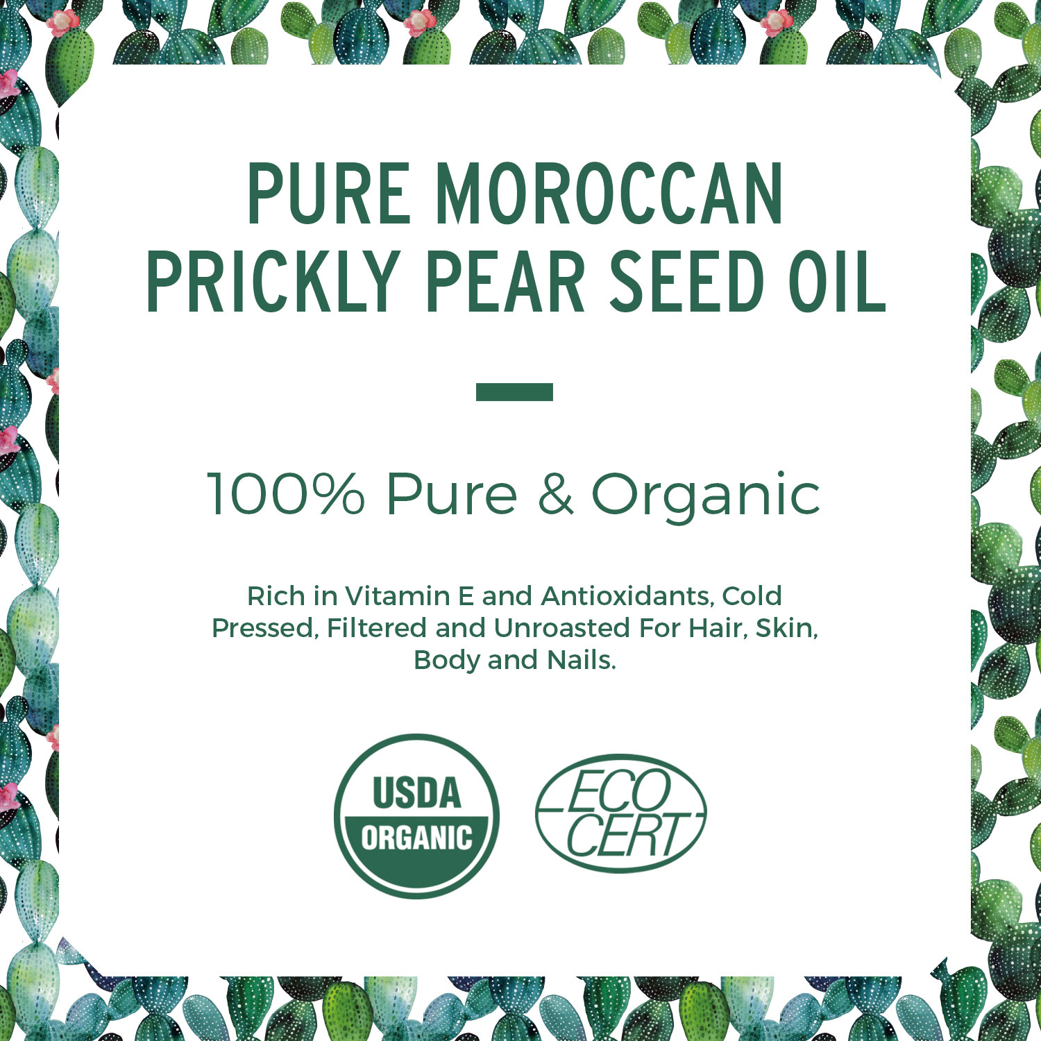 - Our fairly traded organic Prickly Pear Oil is ethically sourced in Morocco. Not Tested on Animals.